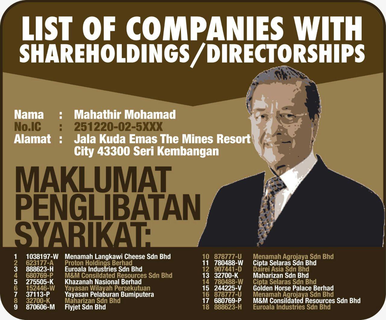 Berdasarkan gambar di atas, ia merupakan senarai syarikat yang Tun M pernah terlibat (maksudnya ada share atau jadi director dalam syarikat), tapi adakah ia benar? Mari kita bongkarkan.