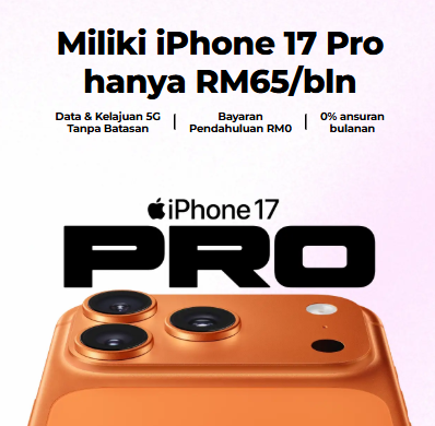Dapatkan iPhone 17 Pro dengan hanya RM 65/sebulan…dan 0% faedah!